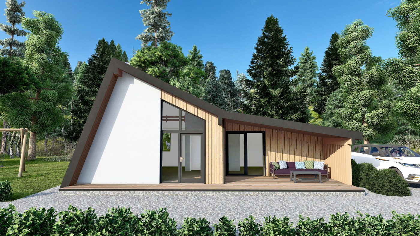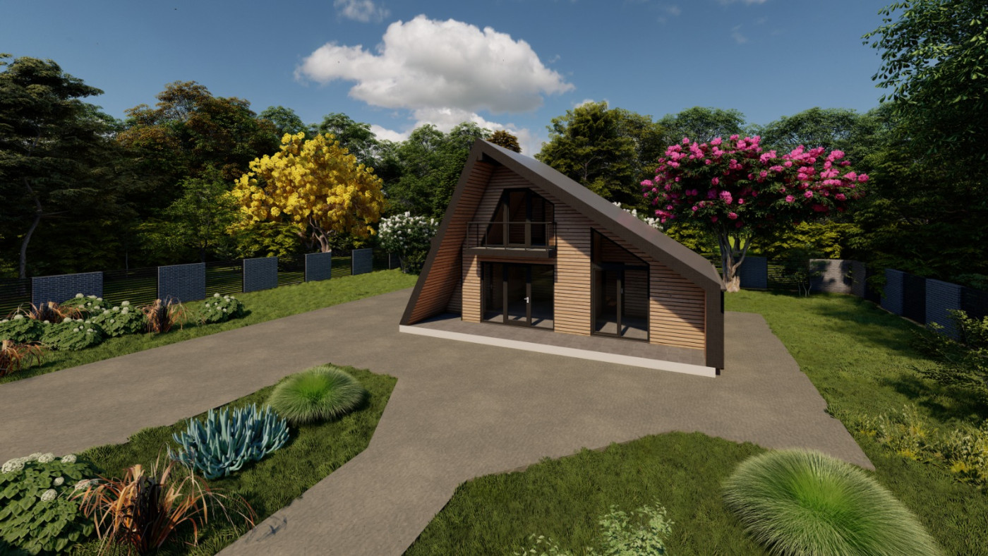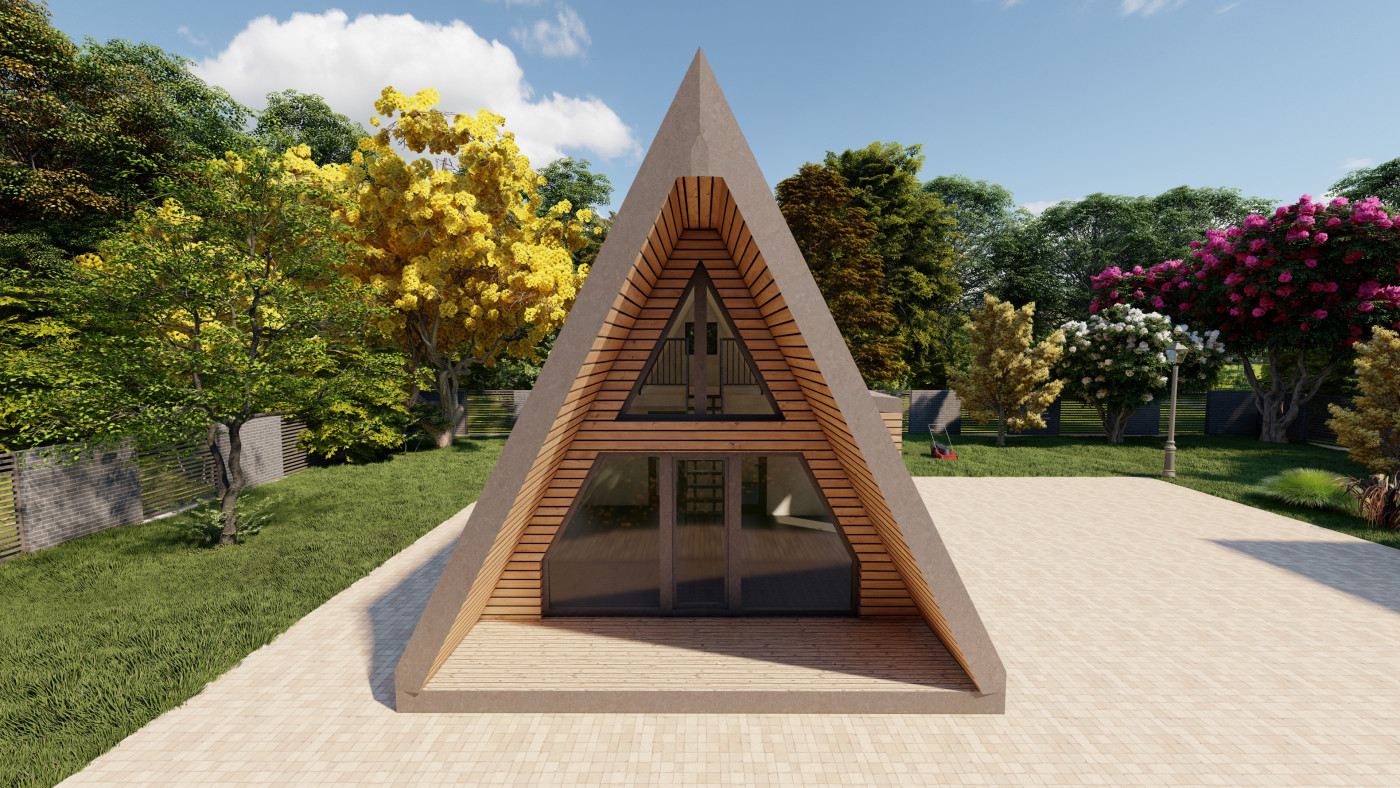 Minimalistický A-frame koncept navrhnutý pre prírodu, svetlo a čistý priestor.